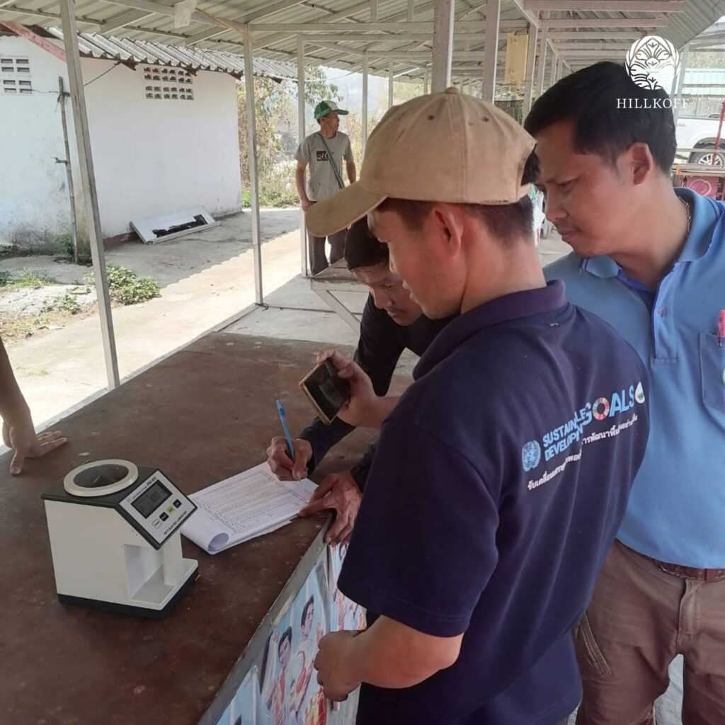 รวมเกษตรกรจากหมู่บ้านขุนตื่นน้อย ผีปานเหนือ แม่แฮหลวง และห้วยแห้ง เกษตรกรในพื้นที่สูงอำเภออมก๋อย จังหวัดเชียงใหม่ ได้รวมตัวกันภายใต้การสนับสนุนของสถาบันวิจัยและพัฒนาพื้นที่สูง (องค์การมหาชน) เพื่อดำเนินการจัดส่งผลผลิตกาแฟกะลาอินทรีย์เข้าสู่กระบวนการแปรรูป ณ โรงงานแปรรูปกาแฟฮิลล์คอฟฟ์ อำเภอแม่แตง จังหวัดเชียงใหม่