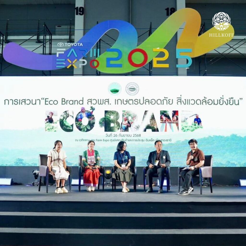 ฮิลล์คอฟฟ์ร่วมสนับสนุนการใช้ตราสัญลักษณ์ “ECO BRAND” ซึ่งเป็นมากกว่าสัญลักษณ์บนฉลาก หากแต่คือคำมั่นสัญญาร่วมกันของภาครัฐ เอกชน และเครือข่ายเกษตรกรในการดูแลผืนป่า ชุมชน และสิ่งแวดล้อมบนพื้นที่สูงอย่างยั่งยืน