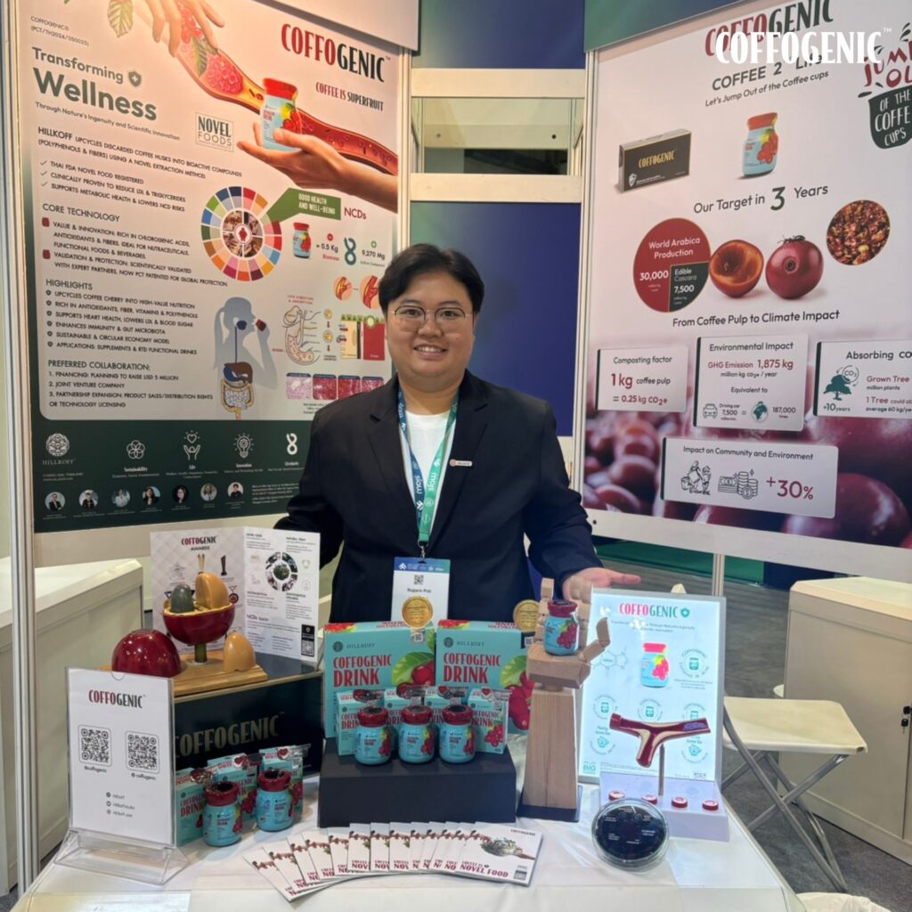 ในโอกาสนี้ Hillkoff ได้นำเสนอผลิตภัณฑ์ “Coffogenic” เครื่องดื่มเพื่อสุขภาพที่พัฒนาจาก เนื้อผลกาแฟ (Coffee Cherry Extraction) ซึ่งผ่านกระบวนการวิจัยและพัฒนาต่อเนื่องยาวนานกว่า 10 ปี โดยความร่วมมือกับคณะแพทยศาสตร์ และสถาบันวิจัยชั้นนำของประเทศไทย เพื่อศึกษาคุณสมบัติของสารออกฤทธิ์ทางชีวภาพ (Bioactive Compounds) ที่อยู่ในเนื้อผลกาแฟ และศักยภาพในการนำมาต่อยอดสู่ผลิตภัณฑ์เครื่องดื่มที่ส่งเสริมการดูแลสุขภาพอย่างรอบด้าน 💚🌍