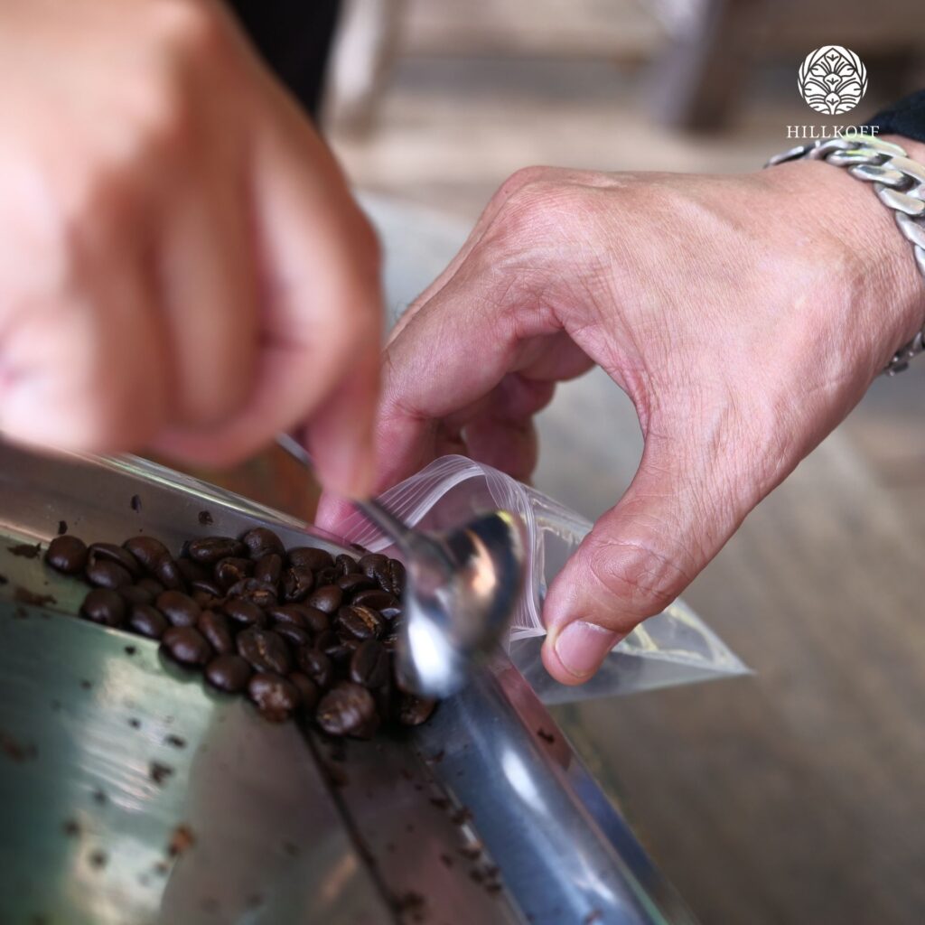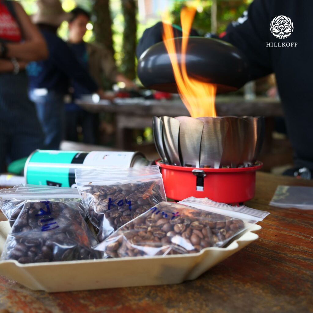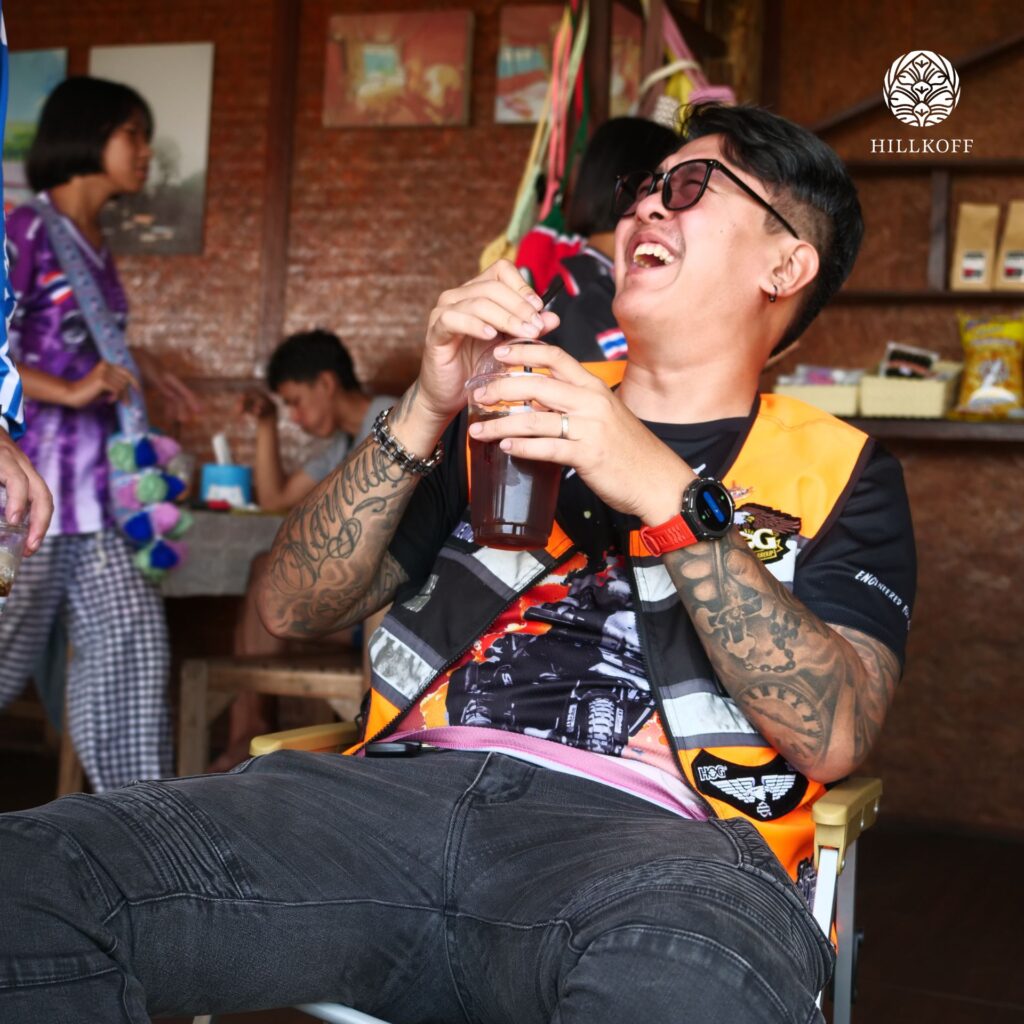 การมาเยือนครั้งนี้เริ่มต้นด้วยการชมกระบวนการส่งมอบกาแฟกะลาอินทรีย์จากชุมชนบ้านปางกึ้ด ซึ่งชาวบ้านลำเลียงผลผลิตออกจากหมู่บ้านเพื่อตรวจคุณภาพและชั่งน้ำหนัก ก่อนเข้าสู่กระบวนการแปรรูปต่อไป ถือเป็นอีกหนึ่งช่วงเวลาสำคัญที่สะท้อนให้เห็นถึงจุดเริ่มต้นของกาแฟหนึ่งแก้ว และความเชื่อมโยงระหว่างชุมชนผู้ปลูกกับผู้มาเยือนอย่างแท้จริง