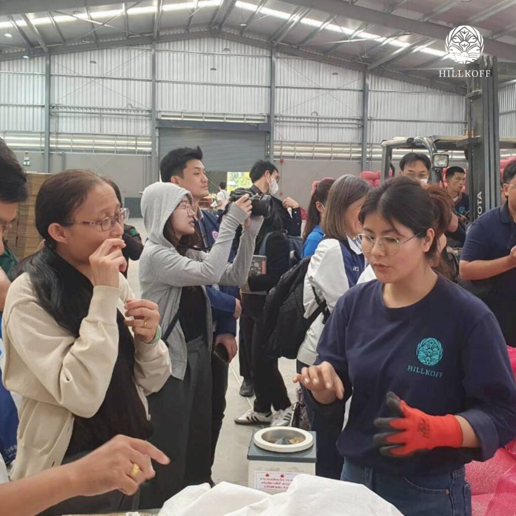 ในโอกาสเดียวกัน คณะผู้บริหารและผู้แทนจากหน่วยงานต่าง ๆ ยังได้พบปะผู้นำชุมชนและตัวแทนเกษตรกรในระหว่างกระบวนการรับซื้อ กาแฟกะลาอินทรีย์ ซึ่งเป็นผลผลิตจากเกษตรกรในจังหวัดแม่ฮ่องสอน ภายใต้ความร่วมมือกับ สถาบันวิจัยและพัฒนาพื้นที่สูง (องค์การมหาชน) โดยคณะฯ ได้เยี่ยมชมขั้นตอนการตรวจรับวัตถุดิบ การตรวจสอบคุณภาพเบื้องต้น ตลอดจนการบริหารจัดการวัตถุดิบก่อนเข้าสู่กระบวนการแปรรูป