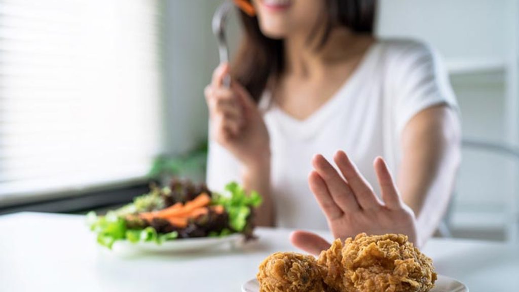 - หลีกเลี่ยงอาหารที่มีไขมันอิ่มตัวสูง เช่น อาหารแปรรูปประเภทไส้กรอกหรือลูกชิ้น เนย ชีส เค้กและอาหารที่มีส่วนผสมของน้ำมันปาล์มหรือน้ำมันมะพร้าว